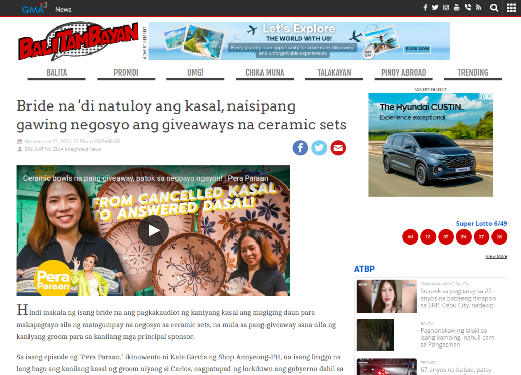 The segment highlighted our journey, the unique ceramic souvenirs we offer, and the heart behind Shop Annyeong PH. It was an incredible opportunity to share our story with a wider audience and showcase the quality and creativity of our products.